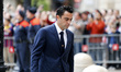 Cesc Fabregas and Alexis Sanchez entering in the cathedral of Barcelona to attend the funeral of Tito Vilanova. Photo: Joan Valls/Urbanandsport/Nurphoto. -- (Photo by Urbanandsport/NurPhoto)