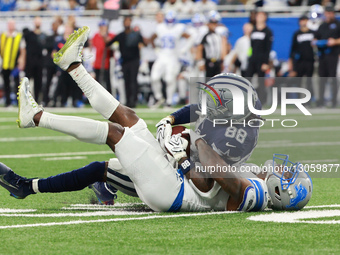 DETROIT,MICHIGAN-DECEMBER 4: Dallas Cowboys wide receiver CeeDee Lamb #88 gets tackled by Detroit Lions cornerback D.J. Reed #4 during the second half of an NFL football game between the Dallas Cowboys and the Detroit Lions in Detroit, Michigan USA, on Thursday, December 4, 2025