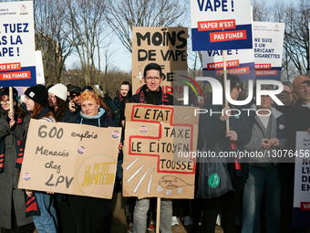 A hundred professionals from the vape and e-cigarette industry demonstrate in front of Les Invalides to protest against Article 23 of the 2026 Draft Finance Bill, PLFSS, which risks regulating their sector on the model of tobacco shops, in Paris, France, on December 9, 2025