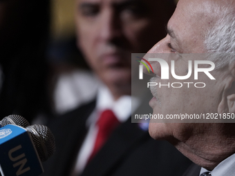 Ambassador Riyad Mansour, Permanent Observer of the Observer State of Palestine holds a press conference regarding th ePalestinian question at the United Nations headquarters on February 5 in New York City. Ambassadors Coly Seck and Riyad Mansour, were joined by the newly elected Committee on the Exercise of the Inalienable Rights of the Palestinian people (CEIRPP Bureau), Ambassador Neville Melvin Gertze, Permanent Representative of Namibia, Vice-Chair.Ambassador Jaime Hermida Castillo, Permanent Representative of Nicaragua, Vice-Chair Ambassador Hari Prabowo, Deputy Permanent Representative of Indonesia,representing Ambassador Arrmanatha Christiawan Nasir, elected as Vice-Chair.Ambassador Ernesto Soberón Guzmán, Permanent Representative of Cuba, Vice-Chair. Ambassador Ahmad Faisal Muhamad, Permanent Representative of Malaysia, Vice-Chair and Rapporteur.