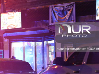 Newark Police Department and Essex County Prosecutor's Office investigators work the scene of a mass shooting outside Platinum Sound Studio at 790 Clinton Ave. in Newark, N.J., on December 10, 2025. Two people are killed and two others are injured shortly before 8:30 p.m. No arrests are made.