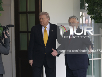 US President Donald Trump greets the Prime Minister of Hungary, Viktor Orban, before holding a bilateral meeting in Washington DC, USA, on November 7, 2025, at the West Wing of the White House.