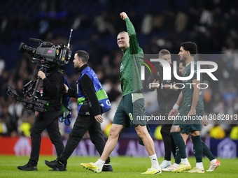 Erling Haaland centre-forward of Manchester City and Norway celebrates the victory after winning uring the UEFA Champions League 2025/26 League Phase MD6 match between Real Madrid C.F. and Manchester City at Estadio Santiago Bernabeu on December 10, 2025 in Madrid, Spain.