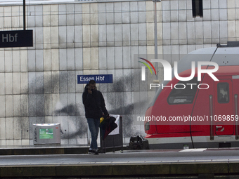 Few people are standing on the platform of Essen Central Station in Essen, Germany, on March 12, 2024, during the 24-hour strike called by the GDL labor union, while Lufthansa cabin crew are also striking on the same day.
