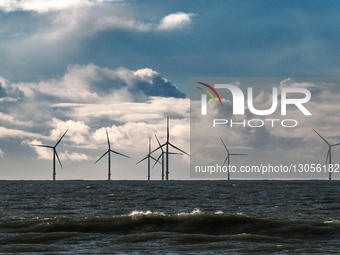 A general view of wind turbines at the Saint-Nazaire offshore wind farm, off the coast of the Guerande peninsula in western France, in Batz-sur-Mer, on December 3, 2025.