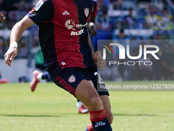 Gabriele Zappa (#28 Cagliari Calcio) plays during the Serie A TIM match between Cagliari Calcio and Udinese Calcio in Italy on May 3, 2025