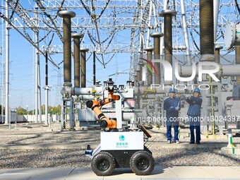 A 5G+quantum intelligent inspection robot and operation and maintenance personnel inspect the main equipment inside the 500 kV Tongle Substation in Nanqiao District, Chuzhou City, Anhui Province, China, on November 25, 2025.