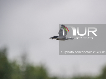 A belted kingfisher is seen during the morning hours at the Oxbow Nature Conservancy in Lawrenceburg, Indiana, on July 23, 2025.