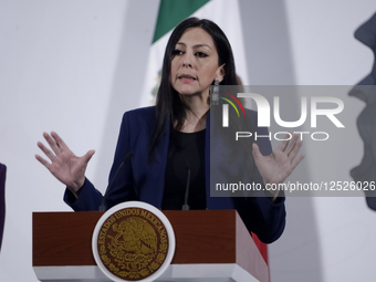 The CEO of Neolpharma Group, Luz Astrea Ocampo Gutierrez de Velasco, speaks during the presentation of Plan Mexico to the national pharmaceutical industry with the companies Laboratorios Kener and Grupo Neolpharma for the manufacturing of specialized medications in Mexico at a news conference at the National Palace in Mexico City, Mexico, on July 3, 2025.