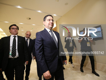 Moroccan Foreign Minister Nasser Bourita(C), during the 31st ordinary session of the Arab League of Heads of State will be held in Algiers, Algeria, October 29, 2022. The Arab League summit is scheduled to take place in Algiers on November 01 and 02, 2022