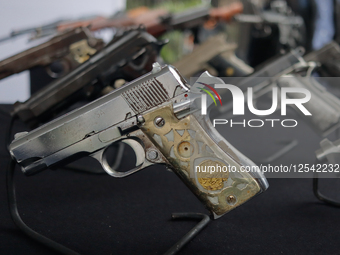 Guns are seen during the ceremony of the International Day for the Destruction of Firearms, where 2,090 weapons are seized and destroyed at the Basilica of Guadalupe in Mexico City, Mexico, on July 9, 2025.