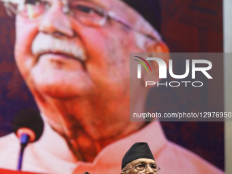 Former Nepali Prime Minister KP Sharma Oli attends a program to welcome back the communist leaders who separated a few years ago amid a ceremony in Kathmandu, Nepal, on November 10, 2025. Ram Kumari Jhakri and other leaders who did not join the unification of 10 leftist groups return to the CPN-UML. They return to the UML through the ''Ghar Farka Rastriya Abhiyan'' (Return Home National Campaign) conducted by the UML at the City Hall in Kathmandu. Along with Jhakri, former lawmaker Krishna Kumar Shrestha (Kisan), CPN (Unified Socialist) politburo member Pitambar Timilsina, Arjun Rai, Nawaraj Paudel, Gambhir Lal Shrestha, and other leaders who did not join the unification return to the UML. They are welcomed by UML Chairman KP Sharma Oli.