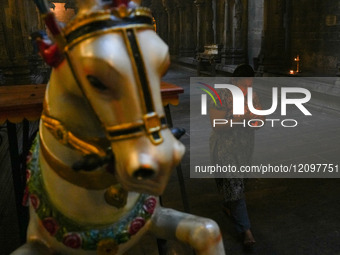 A devotee lights the oil lamps to worship God at a Hindu temple in Colombo, Sri Lanka, on February 26, 2025. Maha Shivaratri is a Hindu festival celebrated annually in honor of the deity Shiva, between February and March. According to the Hindu calendar, the festival is observed on the fourteenth day of the first half of the lunar month of Phalguna.