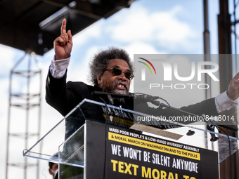 Dr. Cornel West delivers an impassioned speech at the Poor People's Campaign's (PPC) Moral March on Washington and to the Polls. The event calls attention to the level of poverty and economic instability in the US and the disproportionate coronavirus mortality rate among the poor and low-income, and demands more equitable distribution of resources throughout society and voting rights for all Americans. Hundreds of organizations and thousands of people participated in the march.