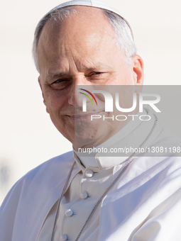 Pope Leo XIV arrives aboard the popemobile during the weekly general audience at St. Peter's Square in the Vatican, on December 10, 2025.