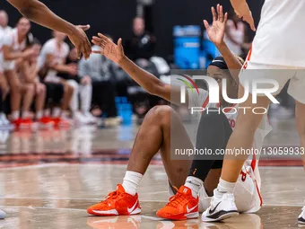 MADISON ST. ROSE (23) of the Princeton Tigers is helped up during an NCAA women's basketball game at Jadwin Gymnasium in Princeton, United States, on December 2, 2025.