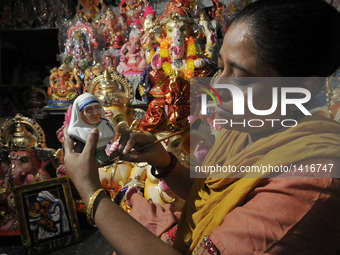 Indian Artist finishing touch Mother Teresa Idol in Kolkata, India on 2 September 2016. The Vatican will declare Mother Teresa "Saint Teresa of Calcutta", on the 19th anniversary of her death. Born as Agnes Gonxha Bojaxhiu, in Skopje, Macedonia, Mother Teresa dedicated her life to helping the poor in Kolkata, India. After she passed away in 1997, Mother Teresa's India-based Missionaries of Charity grew to consist of more than 4,000 nuns who run 700 centers, consisting of orphanages, leprosy clinics, soup kitchens, homeless shelters and clinics around the world. On 15 March 2016, Pope Francis announced that Mother Teresa would be canonized into sainthood after he recognized a second miracle attributed to the late Catholic nun, the healing of a Brazilian man suffering from brain tumors. Her canonization has been highly anticipated by supporters, but mired in controversy amid claims that Mother Teresa provided poor medical care and treated the symptoms of poverty while ignoring the cause.