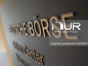 A general view of the sign of Deutsche Boerse is seen in front of the stock exchange center in the city center of Frankfurt am Main, Germany, on November 28, 2025.