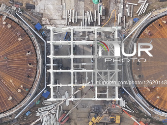 Workers engage in construction work at the salt cavern compressed gas energy storage power generation project in Huai 'an, Jiangsu Province, China, on August 6, 2025.