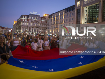 People are seeing with their cellphone lights on during a protest called by the opposition for election 'victory' to be recognized, in Lisbon, Portugal, on August 17, 2024, at Restauradores Square in Lisbon, Portugal. Opponents to the regime of Venezuelan President Nicolas Maduro are holding the Great World Protest for Truth in different cities around the world against Nicolas Maduro's disputed reelection victory claim.