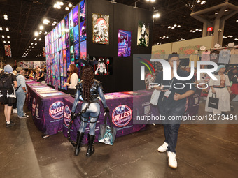 People attend the Anime NYC exhibition hall as they check out merchandise for sale at the Jacob Javits Center in New York City, United States, on August 22, 2025. The event takes place until Sunday, August 24, 2025.