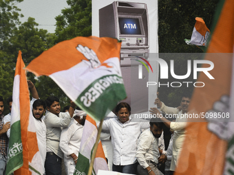 Supporters and Members of Indian Youth Congress (IYC) protests against the present Prime Minister Narendra Modi led Central Government on the occasion of 3rd anniversary of demonetisation outside RBI headquarters in New Delhi on 8 November 2019.