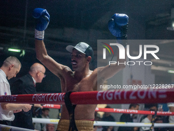 Indian boxer Mandeep Jangra is at The Transatlantic Clash 2 Battle at the Bridge in London, United Kingdom, on April 3, 2025.