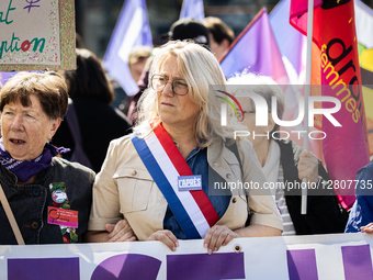 Danielle Simonnet, deputy of the Ecologiste et Social parliamentary group, is seen during the demonstration march for abortion rights as part of World Abortion Rights Day in Paris, France, on September 28, 2025.