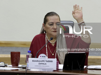 The president of Mexico's National Electoral Institute (INE), Guadalupe Taddei Zavala, participates in a regular session for the review of the election of the Judicial Branch in the Session Room of the National Electoral Institute in Mexico City, Mexico, on June 15, 2025.