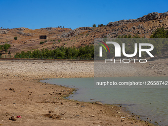 Lake Zarzar in rural Damascus shows drought conditions for the first time in many years, with water levels dropping to the lowest point in over 15 years due to low rainfall, rising temperatures and pollution from waste, on August 18, 2025