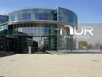 The Audi Forum Ingolstadt is a building complex of Audi AG at the company's largest site in Ingolstadt, which houses the Audi museum mobile, a customer center, conference rooms, changing exhibitions, catering facilities, and an arthouse cinema on an area of around 77,000 square meters in Ingolstadt, Bavaria, Upper Bavaria, Germany, on April 22, 2023.