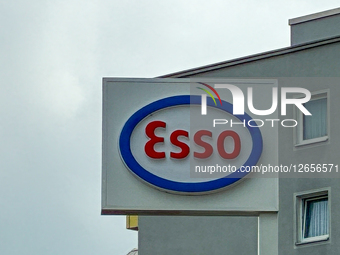 The Esso petrol station logo sign is displayed at a petrol station in Kempten, Bavaria, Swabia, Allgaeu, Germany, on August 17, 2025.