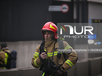 Police, city guards and fire services exercise emergency drills at the US embassy in Warsaw, Poland on 06 December, 2024. Emergency services practiced a large scale fire drill at the US embassy with a fire following a mock explosion inside the compound.