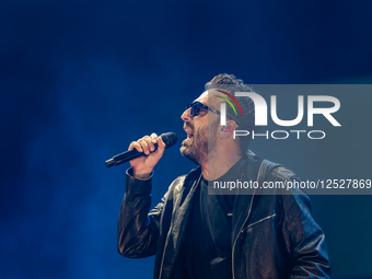 Cesare Cremonini performs at the San Nicola Stadium in Bari, Italy, on July 3, 2025. The concert, the first of two sold-out dates, is a celebration for fans in Puglia. From the first note to the last, the energy of Cremonini and his band involves the audience in an experience. A mix of the most beloved hits and classic songs from his vast discography makes the evening a journey through more than two decades of his career.