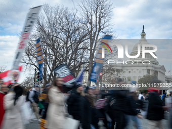People stream past the U.S. Capitol during the annual March for Life in Washington, DC on January 24, 2025. Demonstrators and other anti-abortion activists continue to press for a nationwide ban on abortion and revocation of FDA approval of the abortion drug, mifepristone.