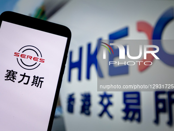 An illustration photo shows the SERES logo on a smartphone with the HKEX logo in the background in Chongqing, China, on October 31, 2025. (Photo Illustration by Costfoto/NurPhoto)