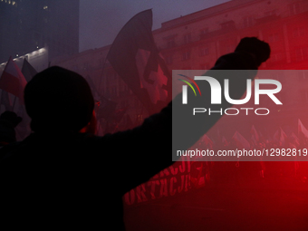 In Warsaw, Poland, on November 11, 2025, participants in the independence march under the slogan 'One Nation - Strong Poland' walk the streets of Warsaw on Independence Day. Poland celebrates National Independence Day, commemorating the country's regaining of independence in 1918 after 123 years of partition. For 16 years, an independence march organized by the nationalist and right-wing Independence March Association takes place annually through the streets of Warsaw. This year, the march is held under the slogan 'One Nation - Strong Poland,' and the event extensively addresses the issue of migration as a threat to national unity.