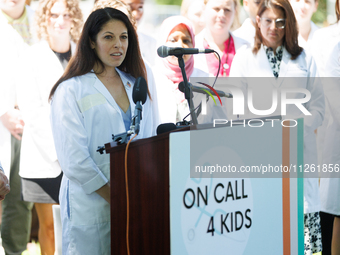 Dr. Emily Lieberman, pediatrician and founder of On Call 4 Kids, speaks at a press conference hosted by On Call 4 Kids outside of the U.S. Capitol in Washington, D.C. on May 21, 2024, urging Congress to take legislative action to prevent gun violence against children.