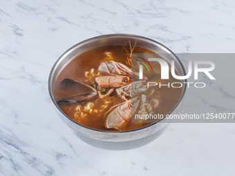 Various styles of instant noodles (Ramen or Ramyeon) are decorated on the marble table in Sangju, South Korea, on July 9, 2025. The Consumer Price Index (CPI), a key measure of inflation, stabilizes at around 2 percent since August of last year, signaling the end of pandemic-driven high inflation. However, few consumers relate to the headline figure, as the prices of essential food items like instant noodles and instant coffee surge, masked by the broader inflation indicator that tracks a wider basket of goods.