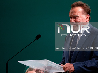 Actor and politician Arnold Schwarzenegger attends the International Conference ''Raising Hope for Climate Justice'' as part of the 10th Anniversary of the Encyclical Laudato Si, at Mariapolis Center, in Albano Laziale, Italy, on October 01, 2025. Arnold Schwarzenegger, founder of the ''Schwarzenegger Climate Initiative'', joins Cardinal Jaime Spengler, President of the Brazilian Bishops' Conference and the Latin American Bishops' Council CELAM, Sister Alessandra Smerilli, Secretary of the Vatican Development Dicastery, and Maina Talia, Minister of the Interior and Environment of the island state of Tuvalu in the Pacific Ocean, for the climate conference on the tenth anniversary of Pope Francis' environmental encyclical ''Laudato si'''. The aim is to find the next steps towards ecological change in the light of the Church's magisterium.