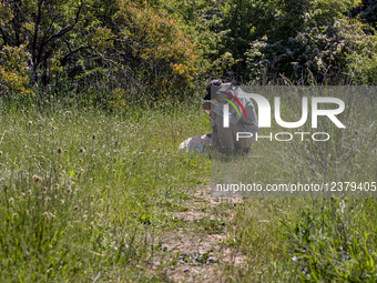 University of California students collect insects in a field within Empire Mine State Park in Grass Valley, Calif., on May 10, 2025.