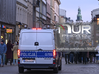 KRAKOW, POLAND – DECEMBER 14: Members of the local police leave after monitoring the Anti-Fascist March in central Krakow, Lesser Poland Voivodeship, Poland, on December 14, 2025. The march, held on the 103rd anniversary of the assassination of Poland’s first president, Gabriel Narutowicz, was organized to protest nationalism, xenophobia, and hate speech, and to show solidarity with Ukraine’s minority community.