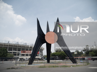 A general view shows the outside of Estadio Azteca on the way to the 2026 FIFA World Cup in Mexico City, Mexico, on September 7, 2025.