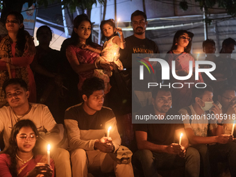 Hindu devotees perform the Ganga Aarti ritual at the Ramna Kali Temple in Dhaka, Bangladesh, on November 19, 2025. The ceremony is observed with lamps, chants, and prayers as part of traditional religious practice.