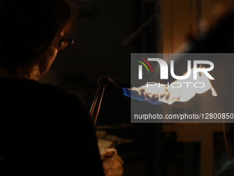 A hand-forming glass demonstration takes place at the Institute of Ceramics and Building Materials during the Malopolska Night of Scientists in Krakow, Poland, on September 26, 2025. The Malopolska Night of Scientists is an event held on the last Friday of September. Universities, research institutes, libraries, museums, and many others organize the event to fascinate participants of all ages with science and the world.