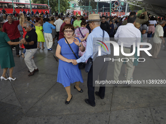 Elderly people are dancing danzon on the esplanade of the Gustavo A. Madero mayor's office in Mexico City, Mexico, as part of the recreational activities organized by the government of the capital.
