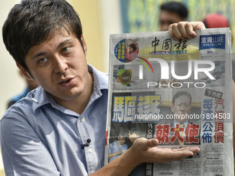 Japanese Nippon TV reporter holds local newspaper China Press with handles a news report at outside of the North Korea Embassy on March 05, 2017 at Kuala Lumpur, Malaysia. North Korean Ambassador Kang Chol has accused Malaysia of colluding with foreign powers in the murder of Kim Jong-nam, must leave the country within 48 hours.