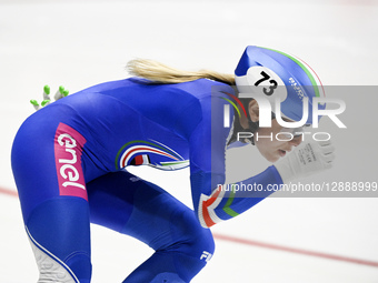 Martina Valcepina of Italy #73 participates in the ISU Short Track World Tour event in Montreal, Quebec, Canada, on October 19, 2025.