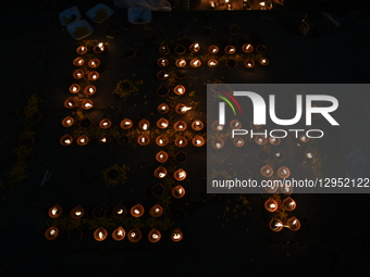 Hindu devotees perform rituals at a ghat on the banks of the Hooghly River with the Howrah Bridge in the background on the occasion of the Hindu religious festival of Dev Deepawali in Kolkata, West Bengal, India, on November 5, 2025. Dev Deepawali is observed on the full moon day of the Hindu month of Kartika to mark the Hindu deity Shiva's victory over the mythological demon Tripurasur.