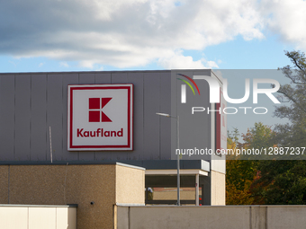 The Kaufland supermarket logo is visible on the exterior of a store in Roth, Franconia, Middle Franconia, Bavaria, Germany, on October 20, 2025. Kaufland is a major German hypermarket chain belonging to the Schwarz Group, which also operates Lidl.